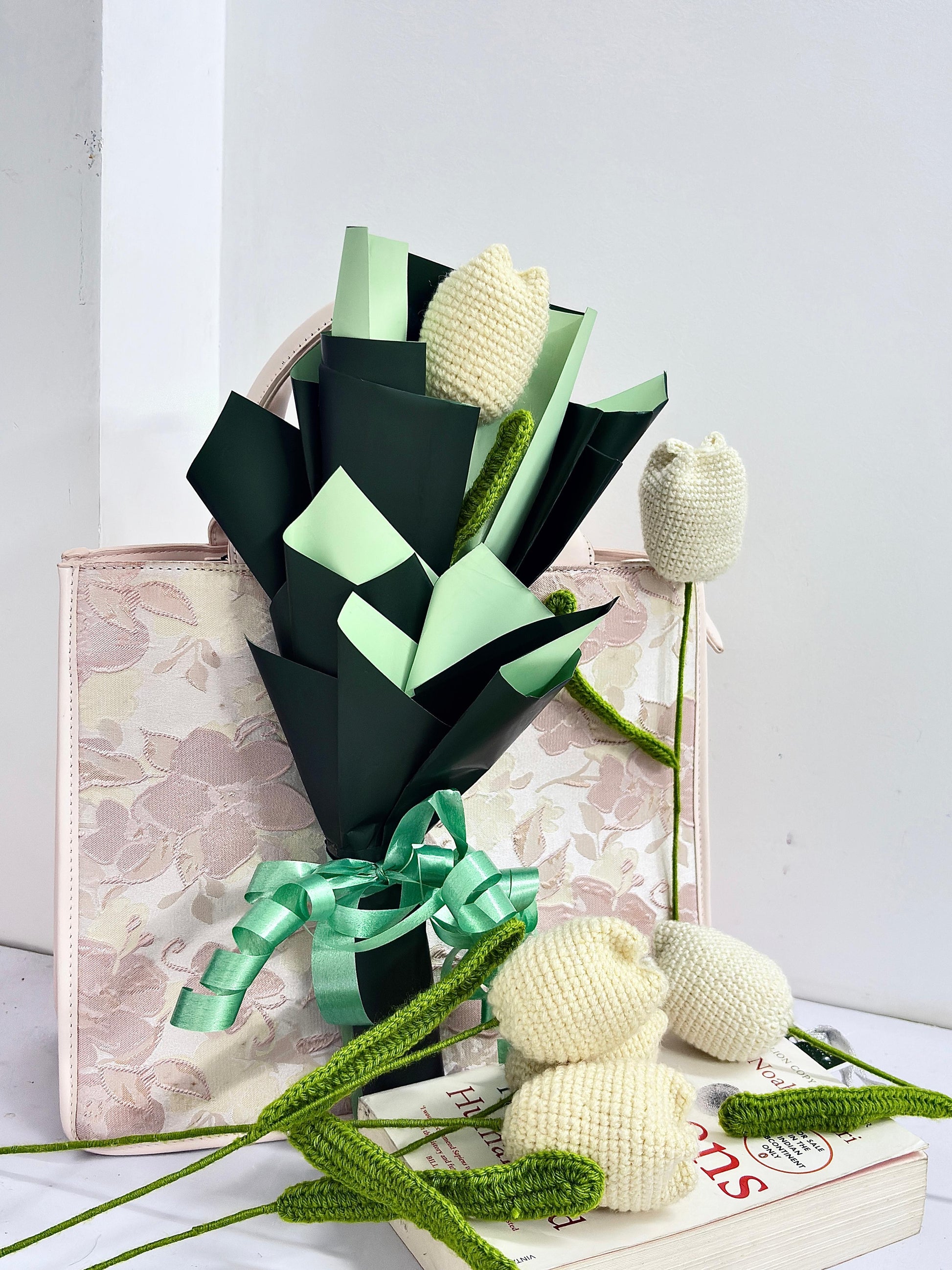 This stunning Tulip Flower Bouquet is a labor of love, with each flower carefully handmade by skilled artisans. The result is a beautiful arrangement of vibrant tulips that will add a touch of elegance to any space. Made with precision and passion, this bouquet is a must-have for flower lovers.