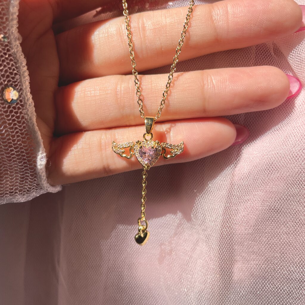The Wings Heart Pendant is made with 18k gold plating, ensuring a tarnish-free and hypoallergenic piece. Perfect for those with sensitive skin, this pendant exudes elegance and quality. Expertly crafted with precision, it is both beautiful and gentle on the skin.